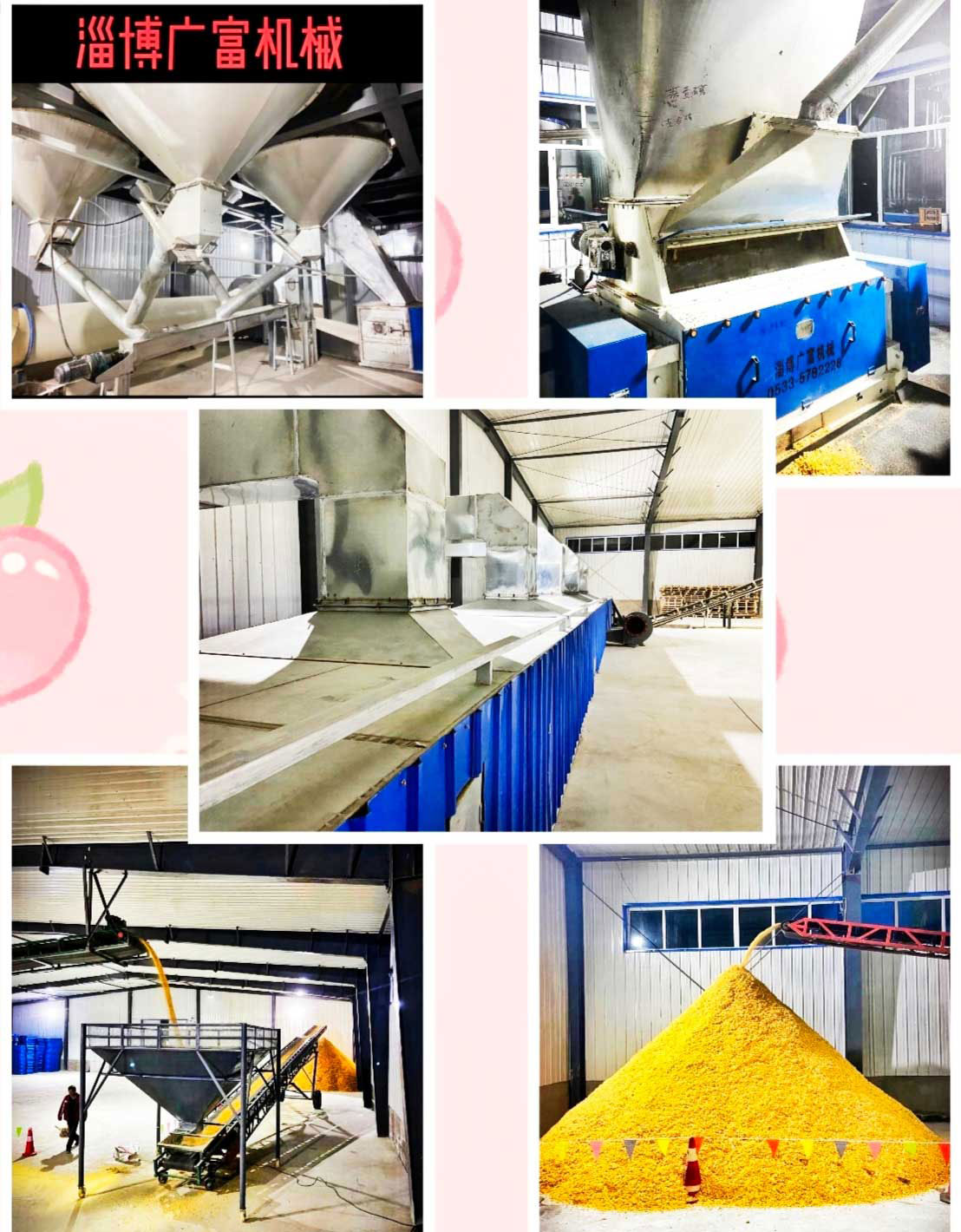 此生產線是我廣富機械有限公司根據(jù)聚鴻元農牧有限公司的需求,制造的可日產240噸的玉米壓片設備,投產后預計年生產玉米片飼料將達七萬噸以上,年利潤總額也將達到千萬元以上,這有效解決了烏蘭察布地區(qū)農民賣糧難的重要問題,也帶動了他們種植玉米的積極性,這起到了增加農民收入和解決剩余勞動力就業(yè)的傳輸帶作用。